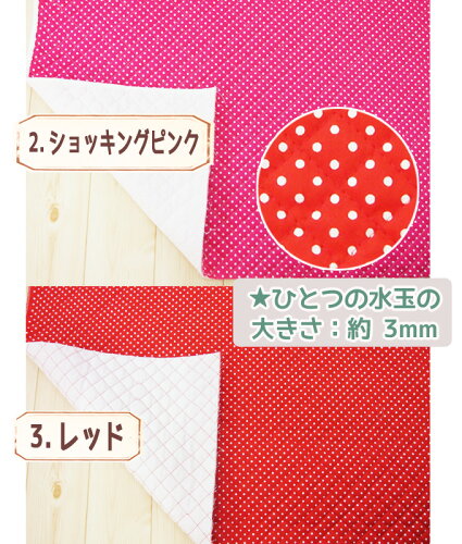 ※5個(50cm)以上からご注文下さい※【在庫限り】 ドットプリント (3mmドット) キルティング生地 全3色 約105cm幅 10cm単位価格 | コットン プリント キルト 中綿 水玉 レッスンバッグ 通園 通学 入園 入学 手芸 ハンドメイド 手作り
