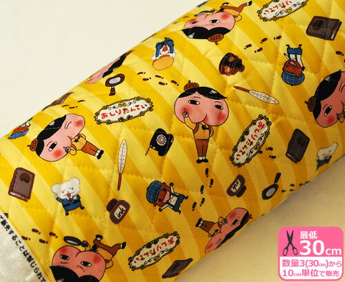 【キルト】おしりたんてい(19OS-011R)イエロー ストライプ模様 探偵グッズ 布地綿100%・中綿入り・105cm巾【生地・布】YUWA